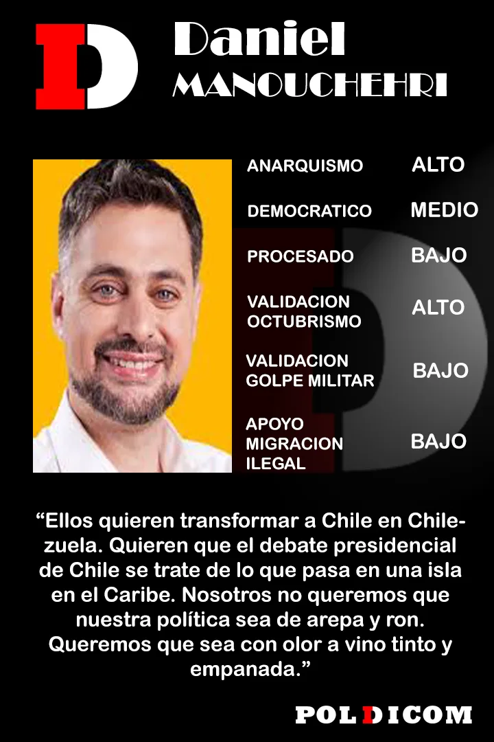Daniel Manouchehri es un diputado chileno de perfil profesional, con origen en la Región de Coquimbo, que ha transitado del activismo estudiantil al ejercicio del poder legislativo. Su ascenso al liderazgo dentro de su bancada indica reconocimiento interno. Su desafío será transformar sus iniciativas en políticas efectivas y consolidar su vinculación con sus representados, manteniendo responsabilidad, transparencia y prudencia institucional.