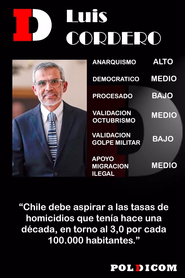 En su rol como ministro desde abril de 2025, ha señalado que Chile debería aspirar a volver a una tasa de homicidios cercana a los 3 por 100 000 habitantes, frente al 6 de 2024; medidas incluyen control de armas, intervenciones focalizadas y colaboración internacional para casos como el Tren de Aragua El País